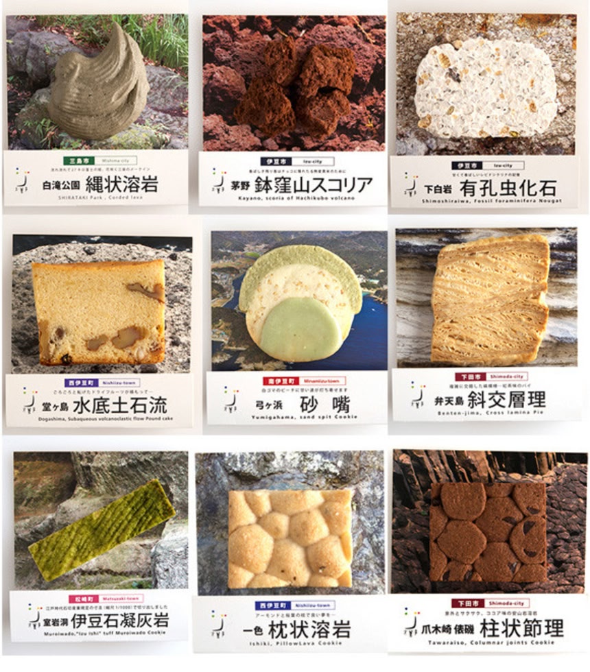 伊豆諸島を構成する地層や化石や岩などを忠実に再現したというジオガシが話題を呼んでいる。その再現度もさることながら、使っている食材も上質なものなので、見て学べて食べておいしいのだ。