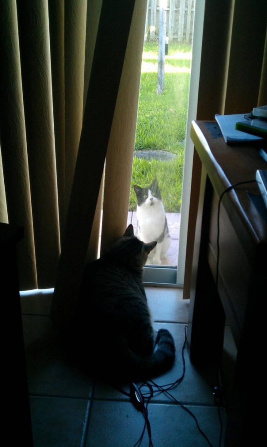 野良でも縄張りに隣接する猫はご近所的存在だから何回か顔合わせして変わりないか見会うんだよ