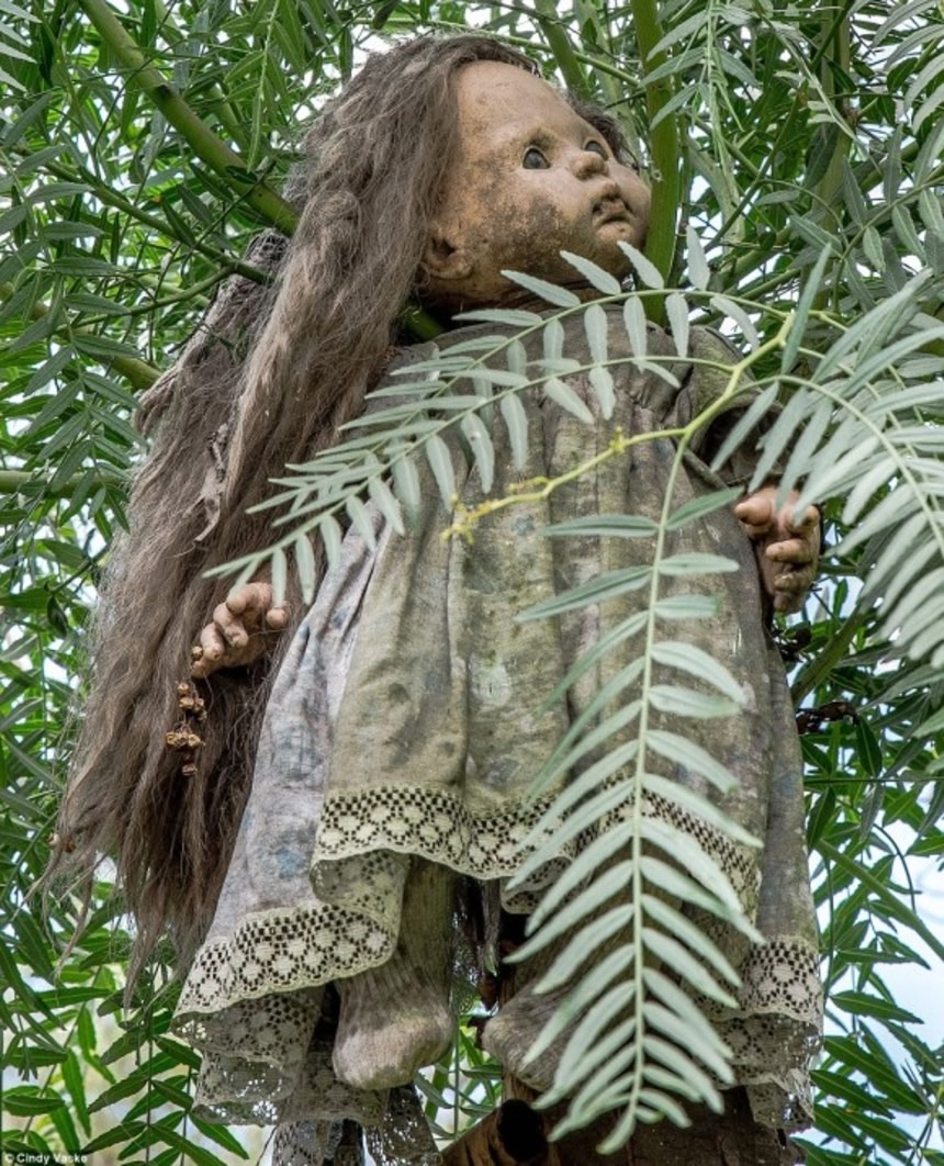恐怖に駆られた彼は、少女の霊から身を守るために人形を木や小屋の周囲のフェンスに吊るすようになった。必死になって少女の霊を供養しようとするサンタナは、以後50年に渡って森を飾り続けた。そうして吊るされた人形は数百に上っている。