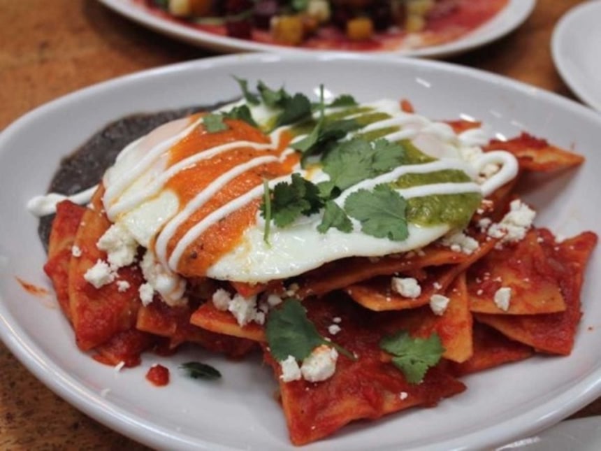 この画像を大きなサイズで見る目玉焼きや、アボカドをトッピングし、スパイシーなソースをかけたトルティーヤチップスに似たチラキレスと呼ばれるもの。