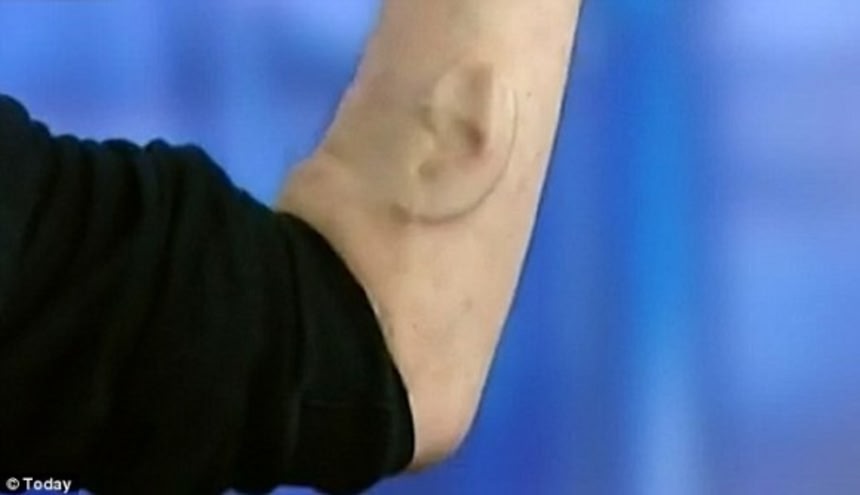 この画像を大きなサイズで見るオーストラリアのパフォーマンスアーティスト、ステラーク氏は芸術のために自身の腕に第三の耳を移植した。彼はWi-Fi接続マイクを移植し、彼が耳にしたことを世界中のあらゆる場所の人々に聞いてもらうというビジョンを追求している。