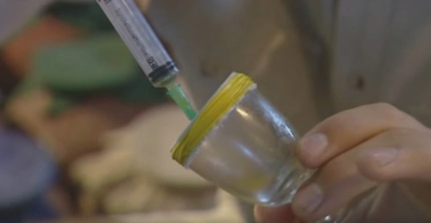 この画像を大きなサイズで見るその毒を容器に集め、注射器に入れかえ