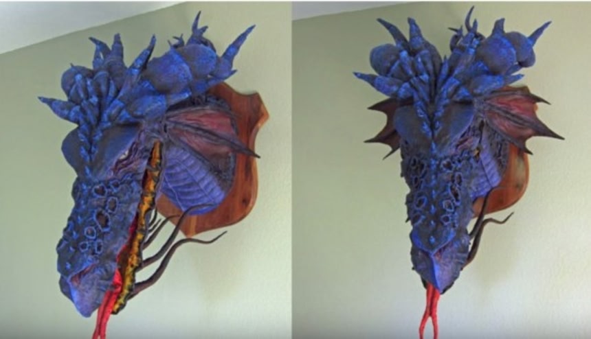こういうの作れたらクラスのヒーローになれることは間違いないかもしれない。主に新聞紙を使って張り子にしたドラゴン壁掛けの作り方だ。目がピカーンと光る仕様なのがすごいね。