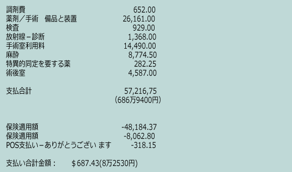 これには救急車、麻酔、その後の診察費などは含まれていない。