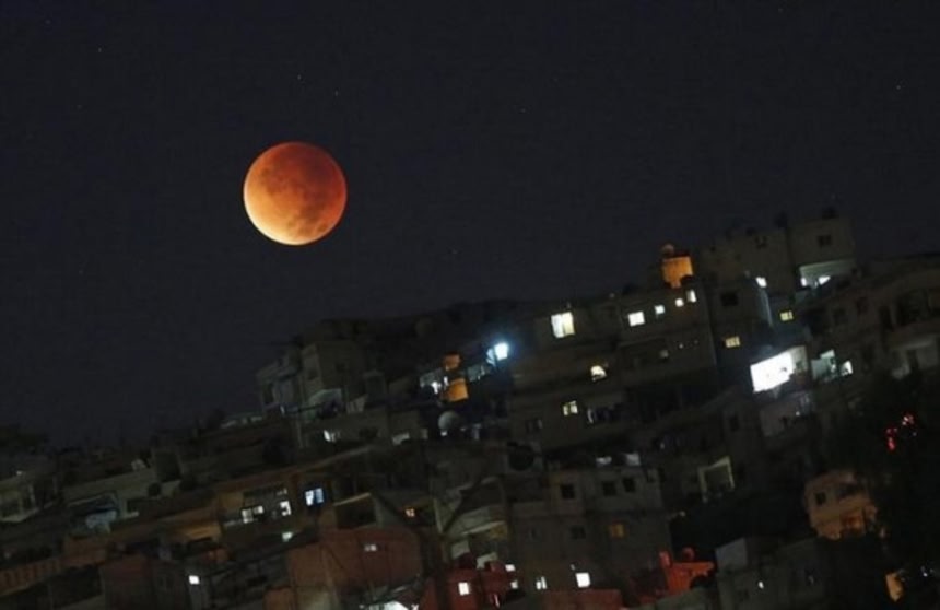 この画像を大きなサイズで見るイスラエル、鳥の向こうに巨大なブラッドムーン