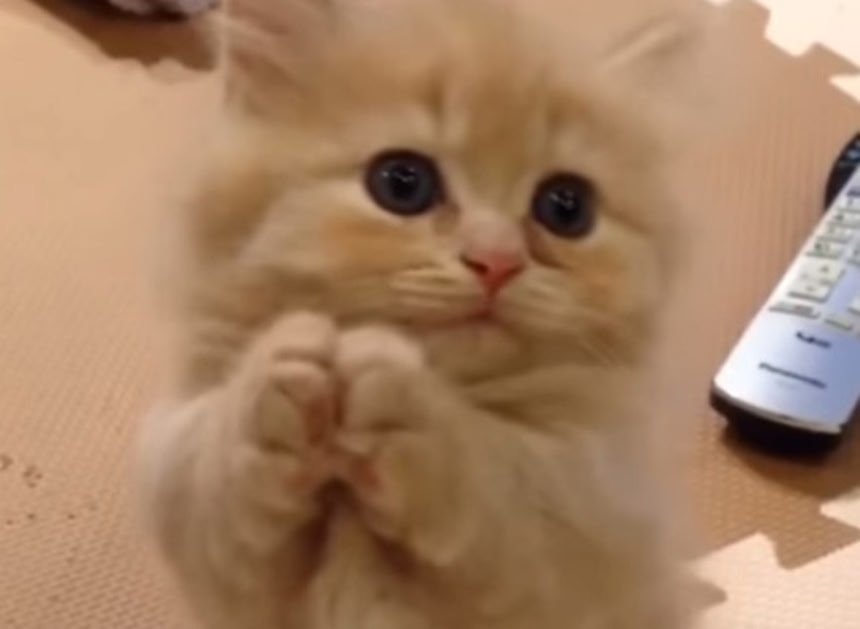 子猫が立ちながら両手を合わせてヒョコヒョコしているだけなのになんでこんなにハアハアしちゃうんだろう。やっぱ猫って生物兵器ですわ。人間を萌えコロにする手合いの。