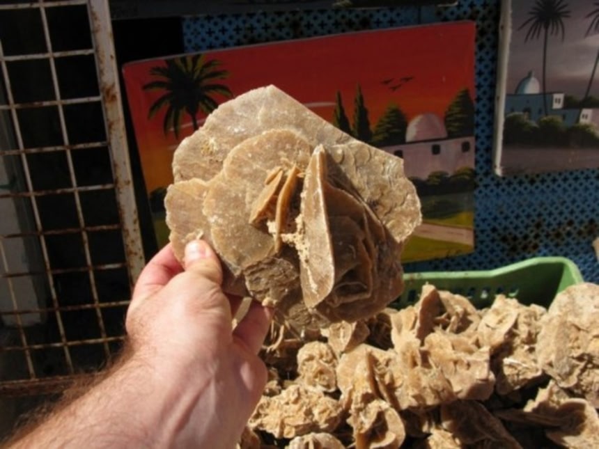 この画像を大きなサイズで見るその美しい造形から、標本や置物としての人気が高く、モロッコやチュニジア、アルジェリア、エジプトでは、お土産屋さんで人気の商品だ。値段は大きさによって千円から数千円くらい。小さいものはアクセサリー用に加工されて販売されたりしているそうだ。