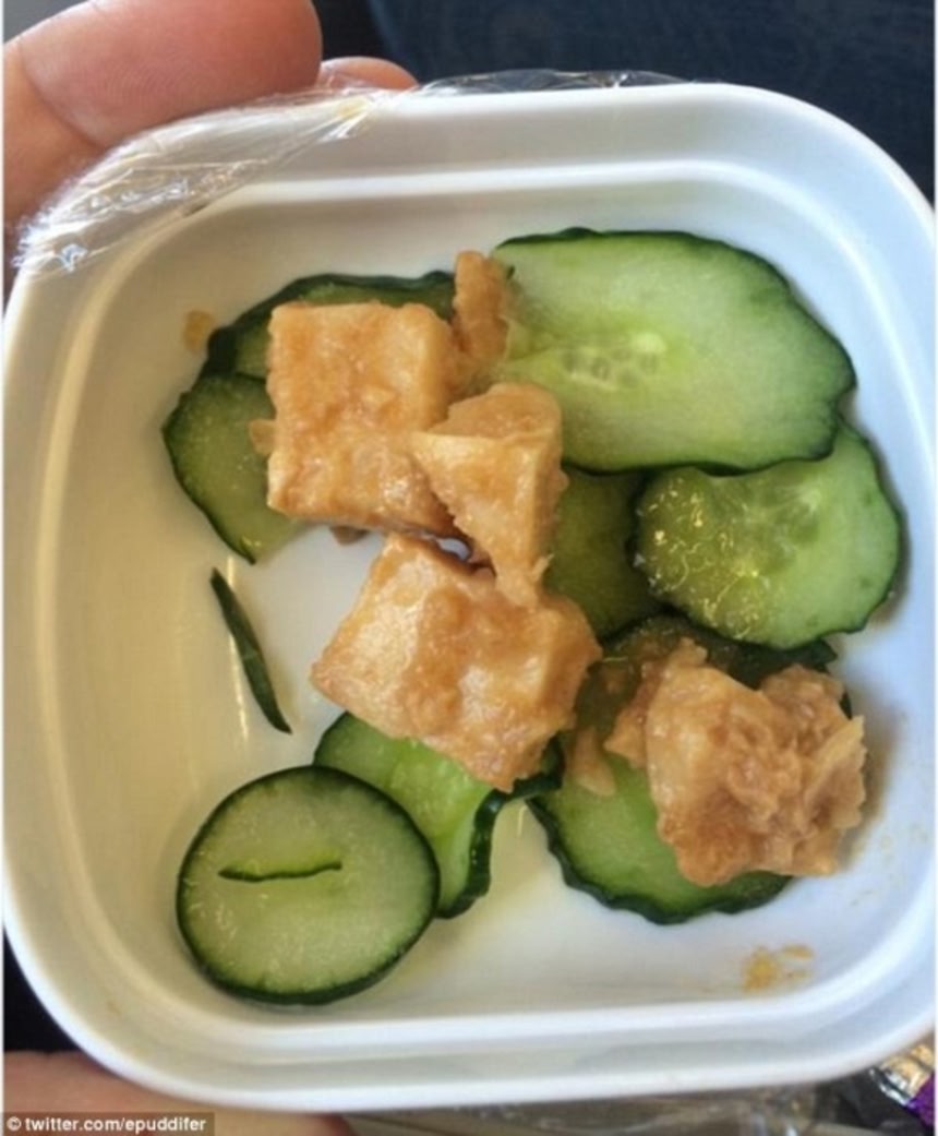 この画像を大きなサイズで見る8.エミリー・プディファーの投稿。”中華航空の前菜。これはキュウリとチキン味のウィスカズ(キャットフード)じゃないかと思うのだけど”