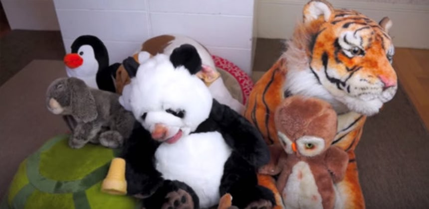 出オチ感満載でお届けするこの動画。大小さまざまなぬいぐるみが並べられている中、センターに位置取りしたパンダのぬいぐるみ。こいつにアイスコーンを近づけたところ、よからぬ反応がおきた。