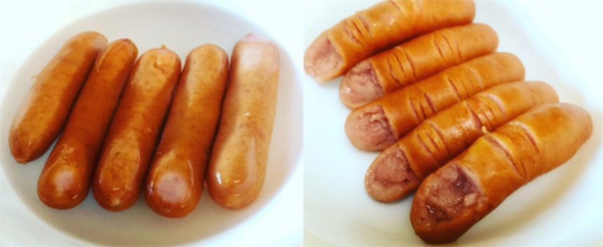 指ソーセージにナイフ入れる絵を自分の指で想像してしまった。