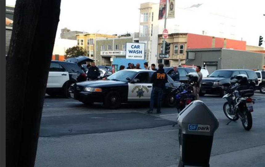この画像を大きなサイズで見る10月7日、午後2:30頃、カリフォルニア州サンフランシスコのサウスオブマーケットで、パトロール中の警察官がナンバープレートをつけていないトヨタの白いハイランダーを目撃した。