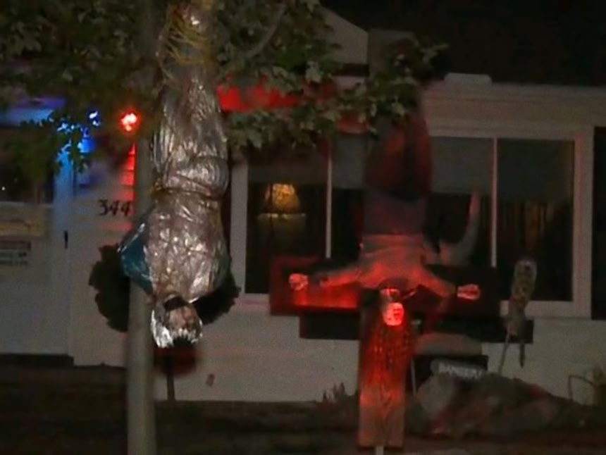 ハロウィン中は町中に死体が転がっていたり、血のりまみれだったりする人も多いので、人々の警戒心が緩んでしまうのもあるのかもしれない。以下はハロウィンの装飾をしている町の様子を集めたものだが、確かにこれらの画像を見ると、今そこに在るホラーが多すぎて、どうせハロウィンだろ?となってしまう土壌はなきにしもあらずのようだ。