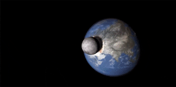 月が地球に接近したら、ぶつかる前にバラバラになってリング(土星の輪みたいな)になるはずなんだけどなあ。