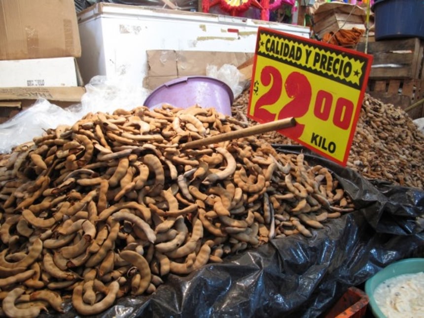 この画像を大きなサイズで見るタマリンドは奇妙な形のフルーツだが、メキシコ料理に欠かすことのできないマストアイテムなのだ。この鞘のような形のフルーツの果肉は甘酸っぱく、アグアス・フレスカ(直訳すると「新鮮な水」)と呼ばれる伝統的なジュースや、フルーツソース、アイスキャンディ、砂糖煮などに使用される。いったいどんな味なのか、想像もつかないがきっとおいしいのだろう。