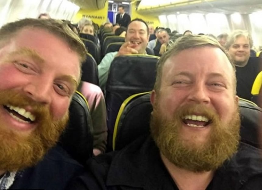 この画像を大きなサイズで見るヒゲの男性はライアンエアーの機内でそっくりさんに出会った。ニール・ダグラスさんはロンドン・スタンステッド空港からシャノン空港に行く途中で出会ったロバート・スターリングさんを見てショックを受けたという。