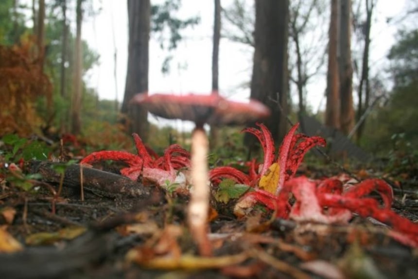 タコスッポンタケは元々はオーストラリア原産のものだが、北米、アジア、ヨーロッパなど世界各国に広がっていった。卵のようなものからまるで孵化するように芽を出して成長する。