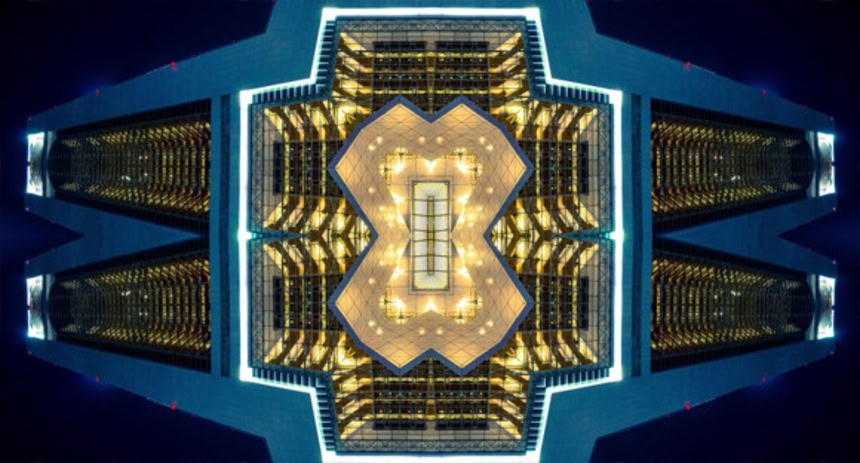 都市部の建造物などの映像や写真を入れ子のように組み合わせ、万華鏡のように動かしたら、壮大なる多重構造のSF都市が出来上がった!