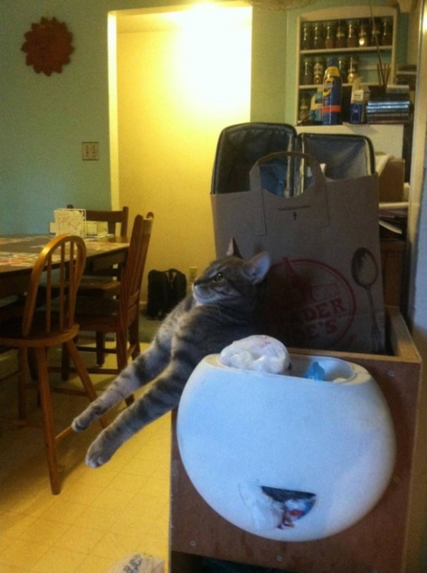 1.餌にどん欲な猫、マシーンと一体化