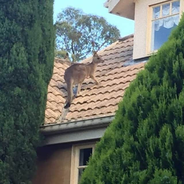 カンガルーのジャンプ力は相当なものだが、なんとこのカンガルー、3メートルもの大ジャンプの後にこの屋根に到着したようだ。