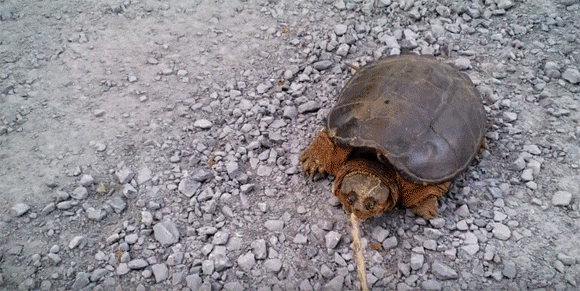 なぜこのカメは、砂利道だか荒地だか真ん中にいたのだろうか