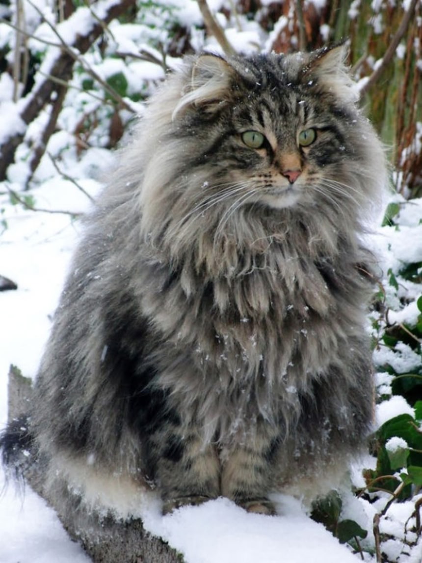ロシア生まれの長毛種は、雪の中でも平気だろうが日本での生活は無理だろうな