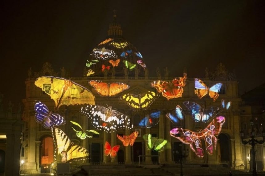 12月8日、バチカン市国にあるサンピエトロ大聖堂に映し出されたのは、地球上に生きている動物たち、絶滅しつつある動物たちの姿、そして地球をとりまく環境である。