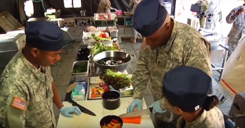 この画像を大きなサイズで見る毎年行われている日米共同方面隊指揮所演習「ヤマサクラ」では、特別イベントとして、 陸上自衛隊と米陸軍によるお料理対決がある。