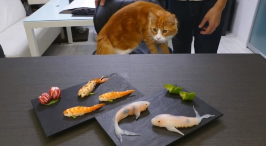 錦鯉そっくりの形状をしたお寿司、「コイ寿司」の作り方動画がYOUTUBEにアップされていた。使用する材料はイカ、エビ、タラコ、きゅうり、赤かぶに酢飯と海苔だ。英語版だけど日本語字幕も出せるし、図解もされているのでこれならトライできそうだ。そして終始、飼い猫が登場しているのも楽しい。