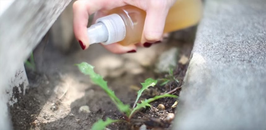 容器にいれよく振ったら後は雑草にスプレーするだけ。
