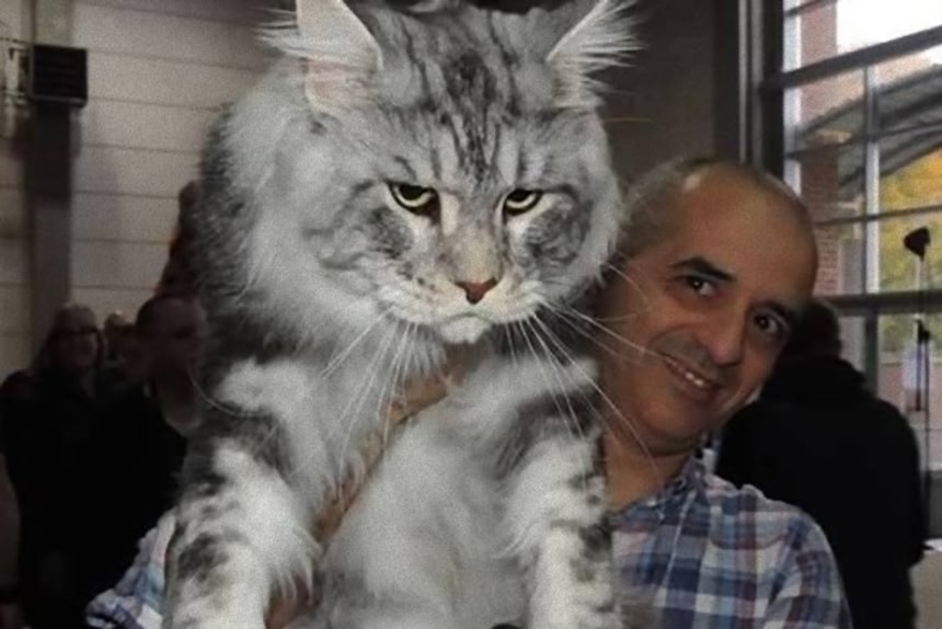 デカいわ!ヤマネコかよ!イエネコの巨大種「メインクーン」と飼い主たちの比較画像