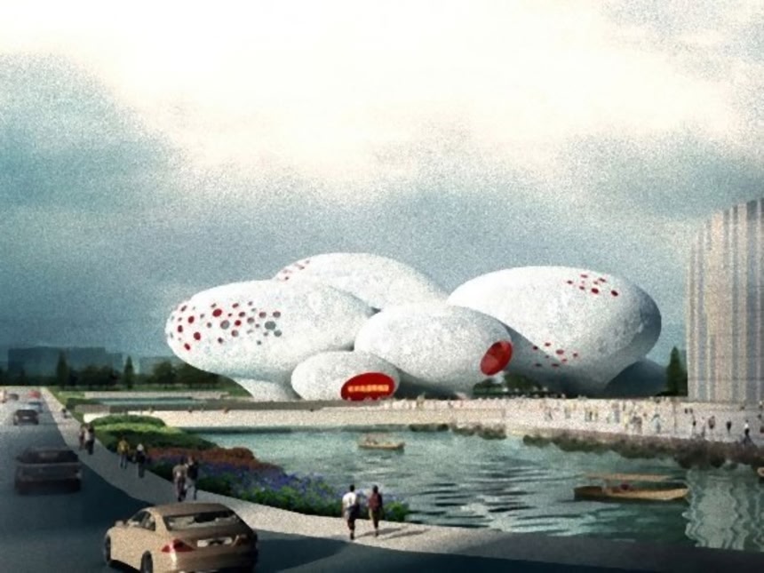 この画像を大きなサイズで見るオランダの建築グループMVRDVがデザインした中国動漫博物館は、巨大な卵の殻のようだ。内部には膨大なマンガライブラリーと3つ映画館とインタラクティブ展示ゾーンを備える。8個の卵のようなデザインは、マンガの吹き出しをモチーフとしたものだ。