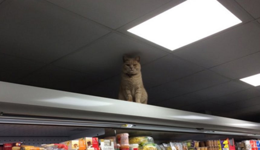 この画像を大きなサイズで見る何度追い出してもまた戻ってくる。棚の一番高いところに鎮座し、頼んでもないのに自ら店内を監視を続けている。どんだけこの店が好きなんだよってレベルで店内に入り込むので、ついに店側も認めざるを得なくなった一匹の猫が話題となっている。