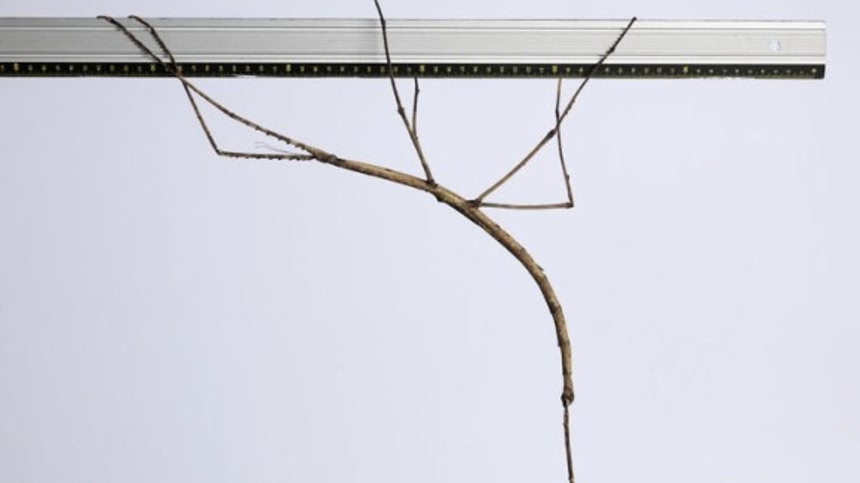現在、世界一とされている最長の昆虫はボルネオ島のナナフシ科で、その長さは56.7センチ、ロンドンの自然史博物館で保管されている。しかし、フィーデル氏は、このレディ・ガガとその子供こそ世界最長のナナフシ科の昆虫ではないかと考えている。