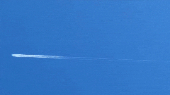 驚くべき速度で飛行機雲の上から下へと通過していった物体