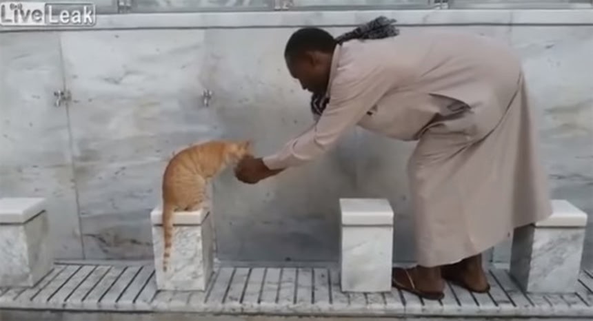 ムハンマドが猫好きであったとされることから、イスラム教徒には猫好きが多いといわれるが、ムハンマドの生誕地サウジアラビアのメッカで、こんな光景が目撃されていた。