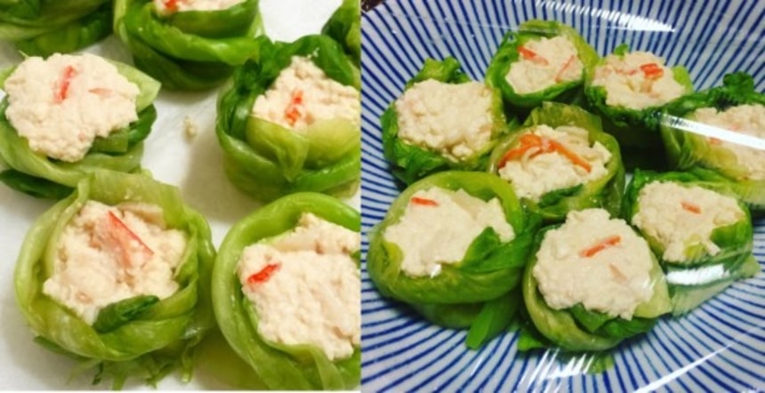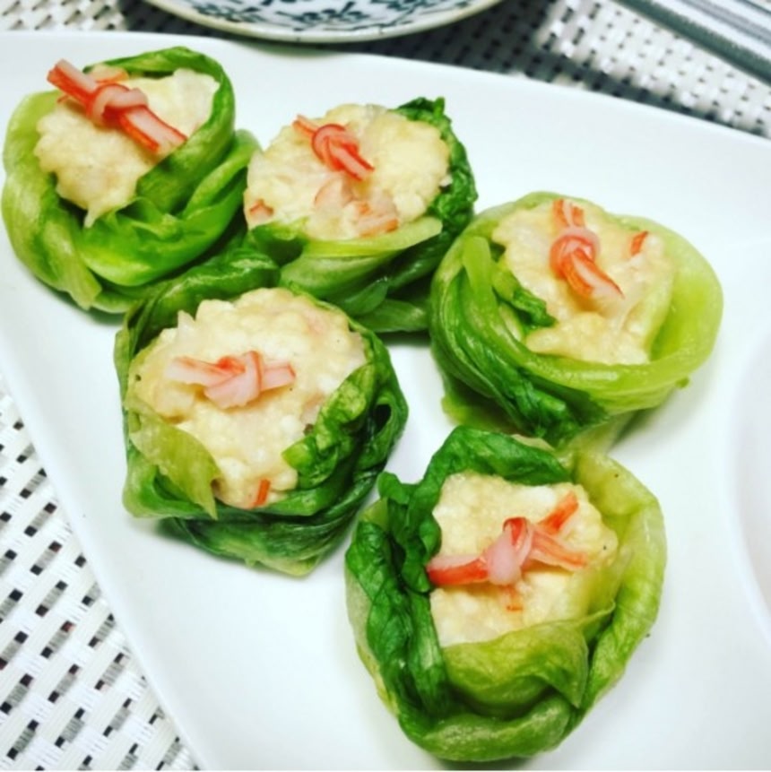 ヘルシーでおいしいし妄想も膨らむレタス豆腐しゅうまい。