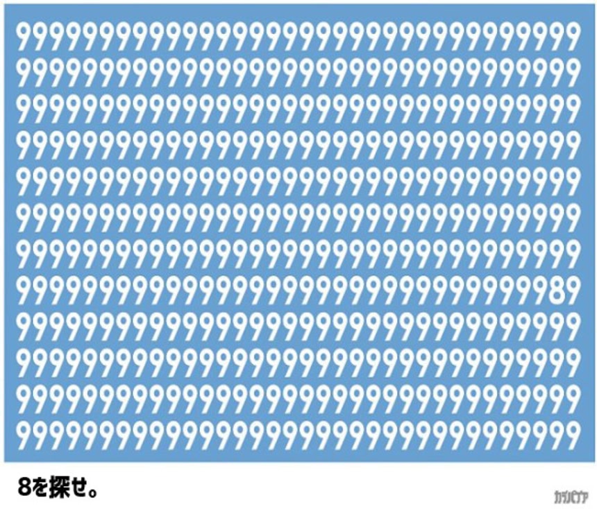 9問目は寄り目にして数字を重ね合わせると、9と8がぴったり合わないからすぐにわかる。