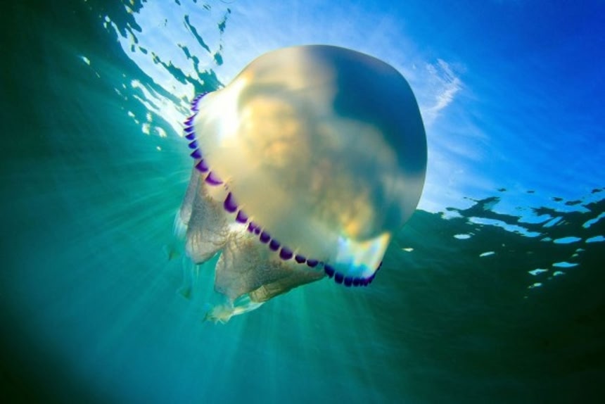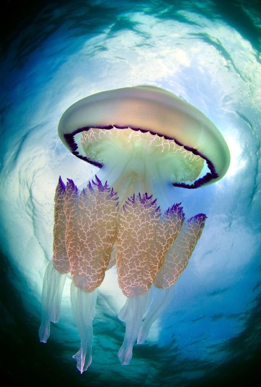 スペイン、カタルーニャの水深3mの海に生息しているという青い縁取りがおしゃかっこいいクラゲ。これらの写真はスペイン、エルベンドレルに住む銀行員のジョルディ・ベニテスカステル(40)さんが撮影したものだ。