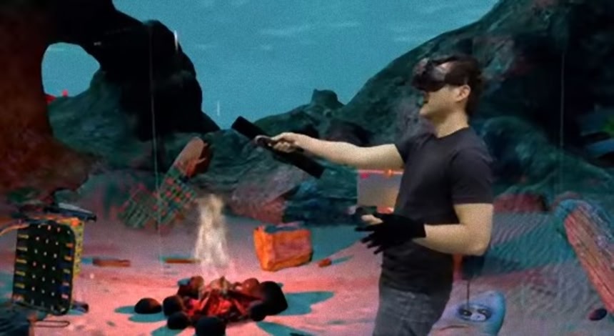 この映像は、SteamVR対応のHTC製VRヘッドマウントディスプレイ「Vive」を装着した時のもので、4月6日にローンチされた。本体と2台の据え置き型モーションセンサーと2台の専用コントローラを含めて996.48ドル(約11万円)となっている。