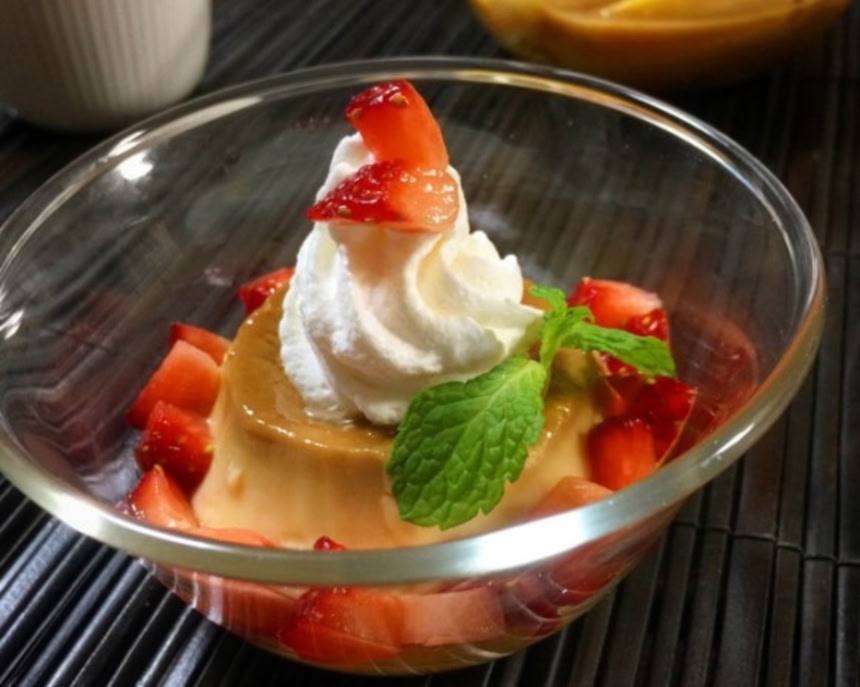 プリンは加熱がちょっと難しくて、加熱しすぎると巣(プリンの中にできる気泡、沸騰したお湯に豆腐を長く入れておくとできるアレ)ができますから、火が通って固まる程度を見極めましょう。