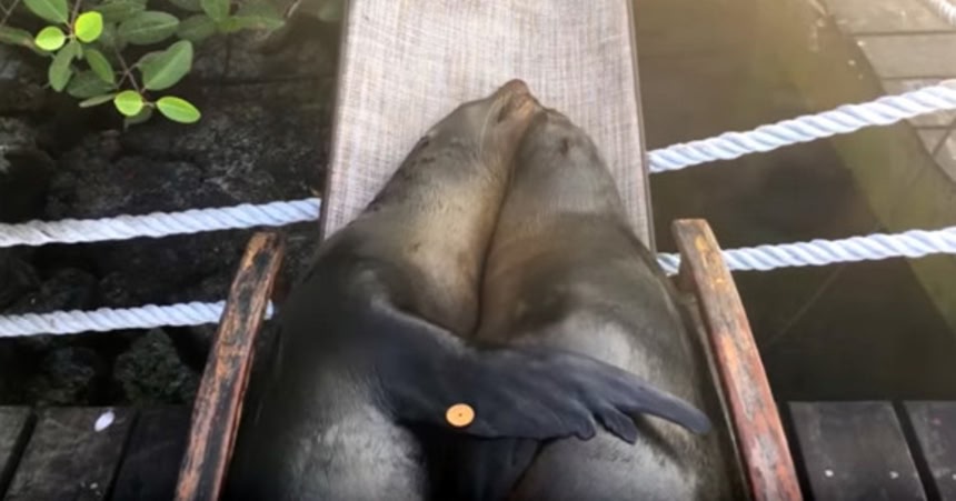 この画像を大きなサイズで見るプロの海洋写真家 クラーク・リトルがガラパゴス諸島のプエルトアヨラの海岸のドックにあるビーチチェアでくつろぐアシカたちの生態を撮影してきたそうだ。