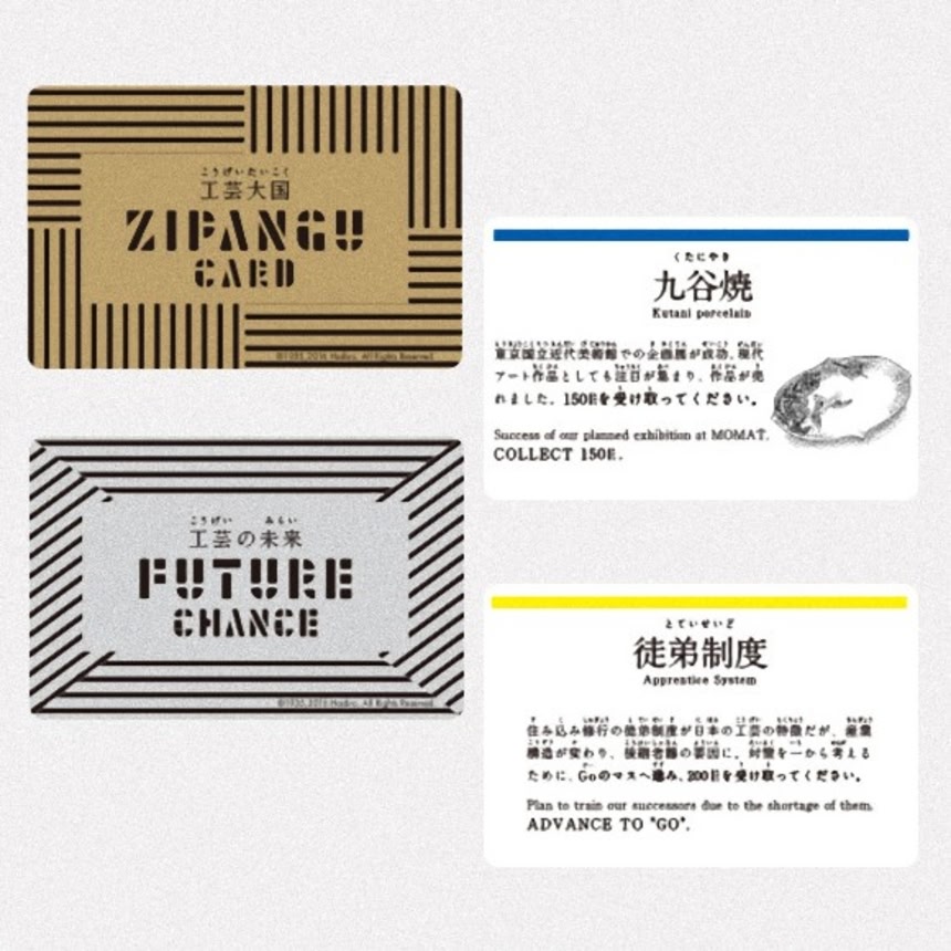 この画像を大きなサイズで見る遊んでいるうちに、各地の工芸品の歴史に詳しくなる。乗り物マスには、かわいらしい各地の郷土玩具をモチーフにした鯨車・雉車・鳩車・鹿車が登場。他にも材料や職人、商品開発などものづくりに必要なものがマス目として登場し、工芸が生まれ、人の手に渡るまでをリアルに体験できる。
