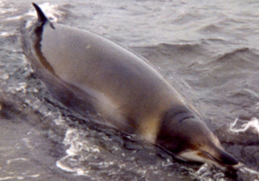 この画像を大きなサイズで見るこの画像はネット上で拡散されることとなり、生物学者の目にも留まった。イギリス、エセクター大学の海洋生物学教授、スティーブン・D・シンプソンによると、頭部と尾部が細くなっているという特徴から、オウギハクジラである可能性があるという。
