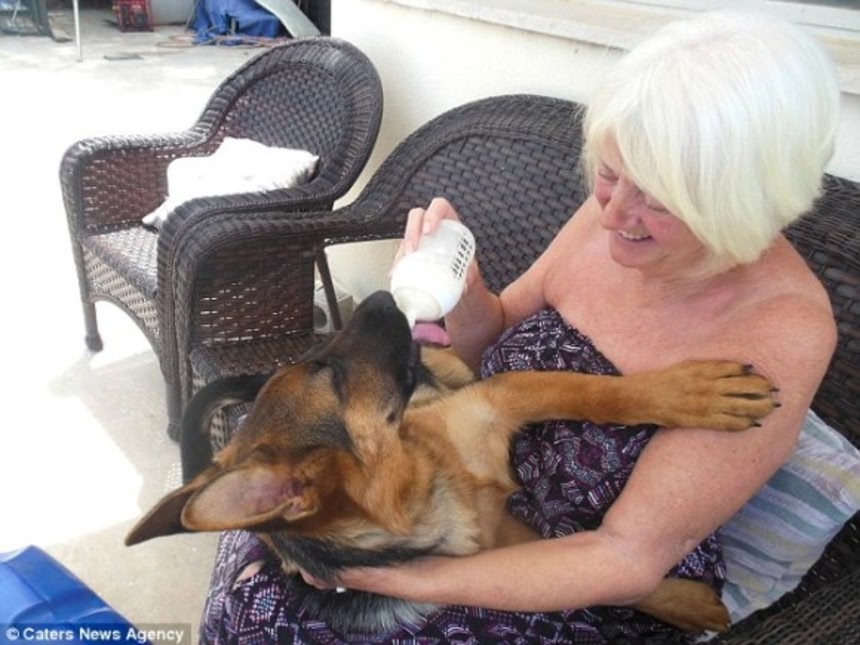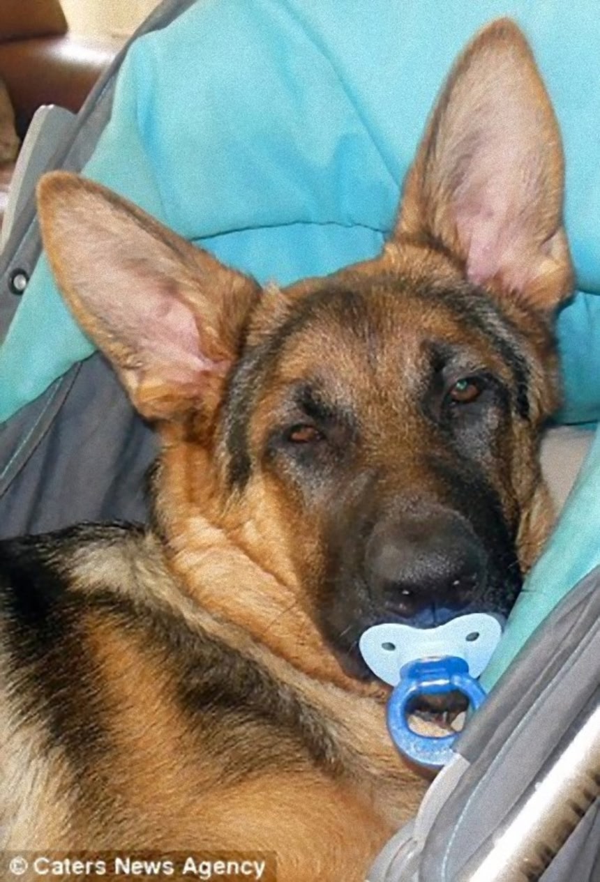 この画像を大きなサイズで見る子犬というものは、噛むおもちゃが好きだが、さすがにおしゃぶりをくわえている犬はいないだろう。だが生後5ヶ月のジャーマンシェパード、カルマ(メス)は、何かと自分を勘違いしているらしい。