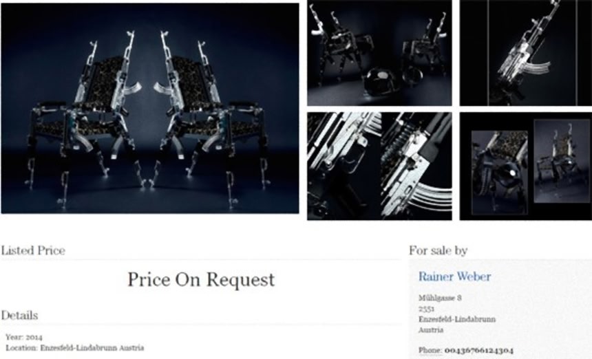 その耐久性と生産の容易性、メンテナンスのしやすさ、全世界に普及していったミハイル・カラシニコフが設計した自動小銃「AK-47」をふんだんにあしらったゴージャスでデザイン性の高い椅子がナウオンセールだそうだ。