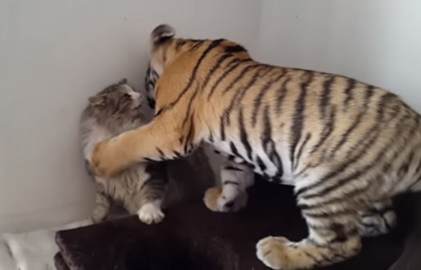 この画像を大きなサイズで見るウクライナのとあるご家庭のお茶の間では、トラの子どもとイエネコのじゃれ合いが展開されていたようだ。同じネコ科とは言え、子どもとは言え相手はトラである。それに臆することなしに立ち向かっているのは、ロシアの品種、サイベリアンである。