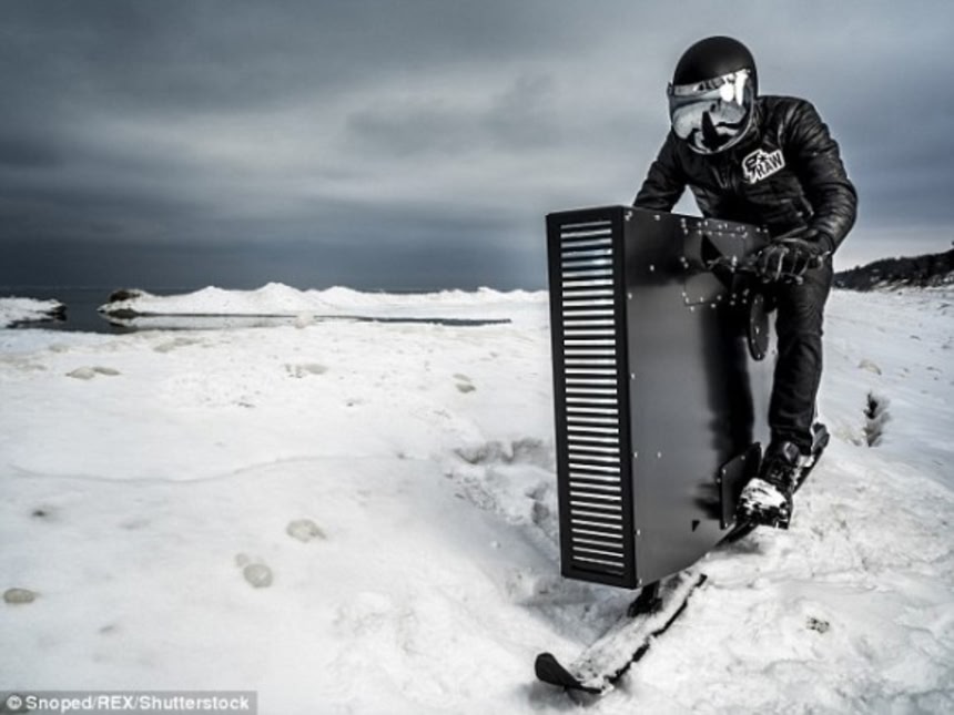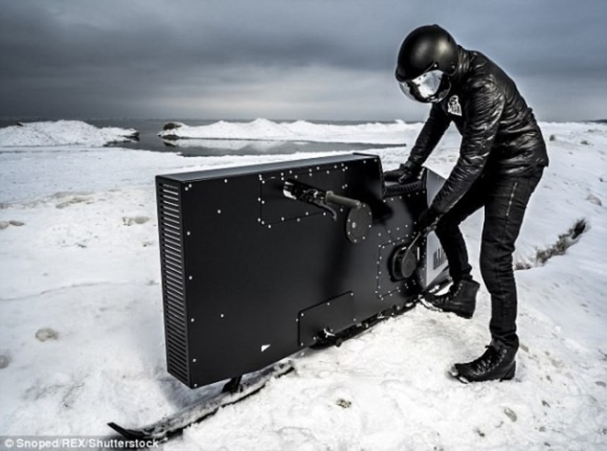 巨大なプレステでも大容量のHDDとかじゃない。幅15cm、長さ193cmのというスリムなボディ内部には90ccエンジン。ジェームスボンドの映画みたいにアルプスの雪上を颯爽と走り抜けるのは、新種のスノーモービル