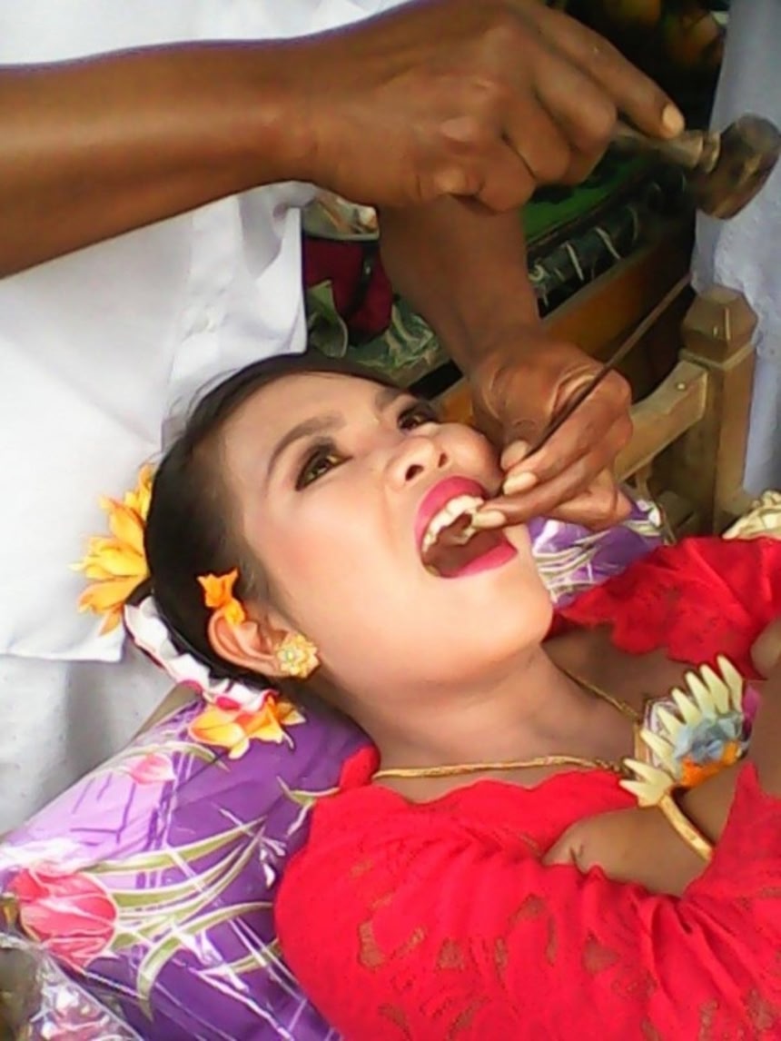 ムタタ=ポトン・ギギと呼ばれる男女が犬歯を削る儀式は、「美しさ」、「社会的・精神的健康」の象徴だ。人間の犬歯には獣性が宿っていると信じられ、押さえ切れない衝動や欲望、怒りや嫉妬などを取り除くために犬歯を削るという。地域によっても異なるが、通常、女性は初潮を迎えた時に儀式が行われる(男性は声変わりする時)。結婚前には必ずこの儀式を済ませていないといけないという。