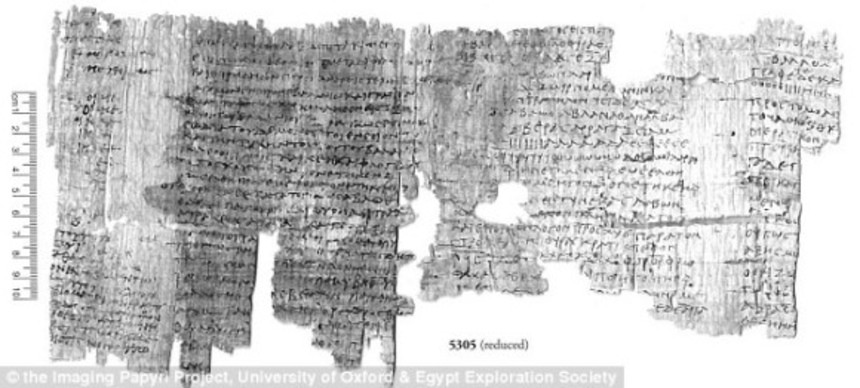 オクシュリュンコスパピルスとはエジプトで発見された、たくさんのパピルスの断片のことだ。50万点以上が、エジプト探究協会やイギリスのオックスフォード大学の研究室に所蔵されている。100年以上昔に、バーナード・グレンフェルとアーサー・ハントによって発掘された。近年は、ボランティアによって膨大なオンラインのデータベースを利用して、これらの文献が翻訳されている。