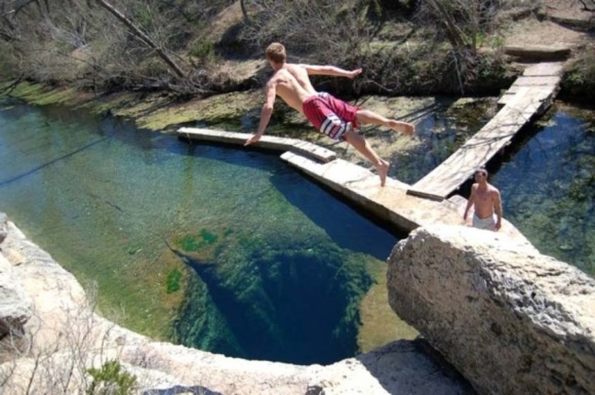 この画像を大きなサイズで見るテキサス州にある水深30メートル以上ある天然の水中洞窟。地元の人は遊びで飛び込み、世界中のダイバーたちが井戸の中を探検しようと押し寄せる。しかし、壁面からは鋭いぎざぎざした岩が飛び出していてかなり危険だ。それでも飛び込む者は後を絶たず、残念ながら、命を落とした者もいる。